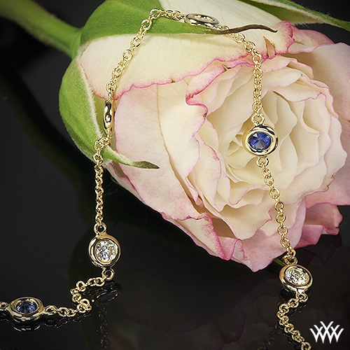 Delightfully delicate Color by the Yard Bracelet sparkles and shines with alternating diamonds and colored Sapphires. Bracelet contains 4 A CUT ABOVE Hearts and Arrows Diamonds (0.25ctw F/G VS), 4 Sapphires (0.25gtw) and measures 7 inches in length. Please allow 8 business days for completion. If you require this item sooner please contact one of our friendly diamond consultants at 1-877-612-6770. We will always attempt to meet your deadline.