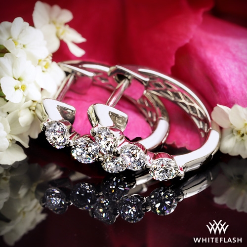 Dainty and stylish, these Three Stone Diamond Hoop Earrings will certain bring joy to any ensemble from business casual to everyday wear. 0.54ctw and 1.50ctw designs shown in the images. The approximate internal diameter for these earrings are as follows: 0.54ctw - 11mm. 1.02ctw - 11mm. 1.50ctw - 12mm. 1.98ctw - 12mm.