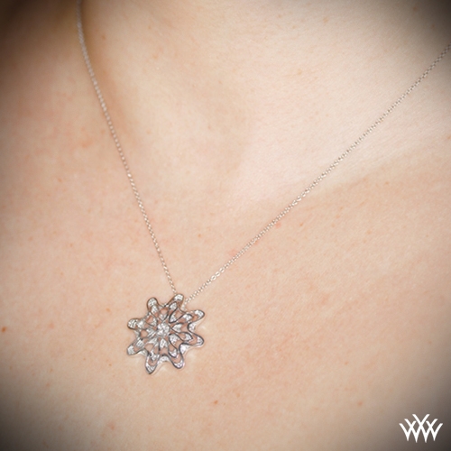 A CUT ABOVE® Hearts and Arrows Diamond Melee (approx 0.33-0.39ctw F/G VS). Measurements are 26mmx26mm. 16” cable chain included, please call for prices on chains longer than 16 inches. Please allow 10 business days for completion. If you require this necklace sooner please contact one of our friendly diamond consultants at 1-877-612-6770. We will always attempt to meet your deadline.