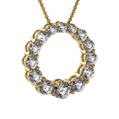 This unique circle shape diamond pendant features graduated brilliant cut diamonds all around.