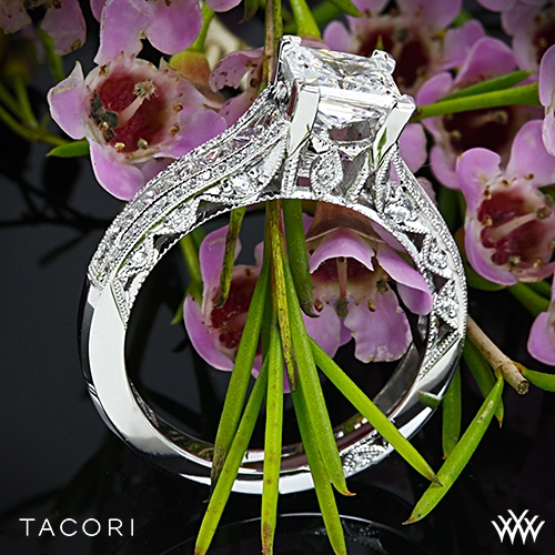 18k White Gold Tacori HT2513PR Classic Crescent Tapered for Princess Diamond Engagement Ring