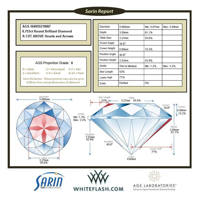 This diamond is certified by the American Gem Society (AGS) Laboratory, the world’s foremost authority on diamond cut quality.