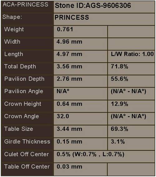 This diamond is certified by the American Gem Society (AGS) Laboratory, the world’s foremost authority on diamond cut quality.
