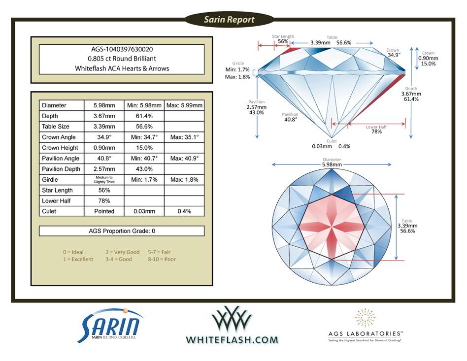 This diamond is certified by the American Gem Society (AGS) Laboratory, the world’s foremost authority on diamond cut quality.