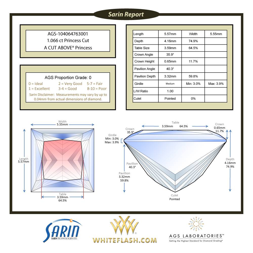 Whiteflash offers four brands of certified diamonds; A CUT ABOVE super ideal, Expert Selection ideal, Premium Select, and Precision Lab. For more, see this page on Whiteflash Diamonds.