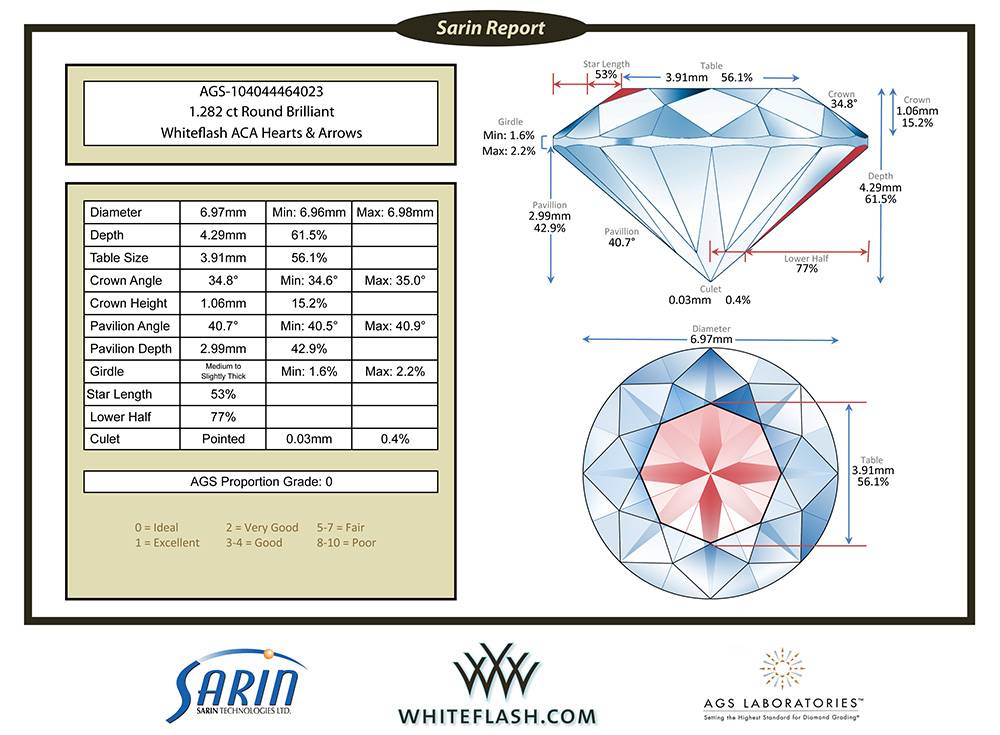 This diamond is certified by the American Gem Society (AGS) Laboratory, the world’s foremost authority on diamond cut quality.