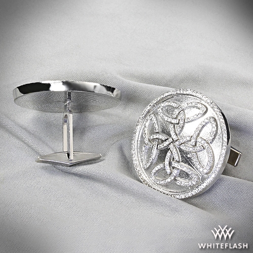 A CUT ABOVE® Hearts and Arrows Diamond Melee (1.00ctw; F/G VS) in a beautiful Celtic pattern, these are guaranteed to draw attention. The width of these cuff links is 30mm. These cuff links have immediate availability. If you have any questions then please contact one of our friendly diamond consultants at 1-877-612-6770.