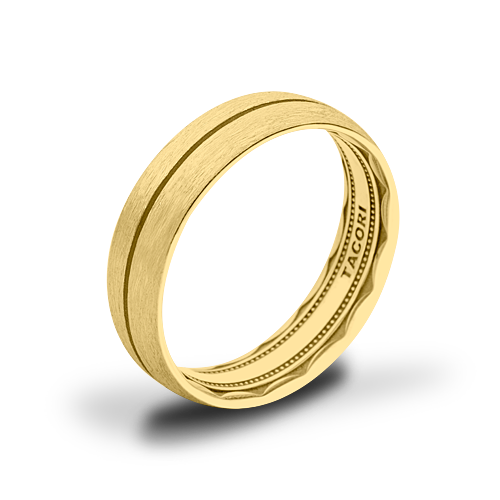 The exterior of this ring is genuinely sophisticated, with a brushed finish and a beveled accent line circling around the softly-rounded top. The interior features sculpted crescent detail with a soft-comfort fit for all-day wearability.
