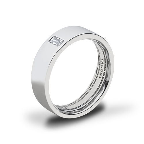 A high polish exterior is accented with a Tacori-exclusive triple-cut diamond, bezel-set into the flat-top band. This simple but elegant design is complemented by full sculpted crescent detail and a soft-comfort fit interior.