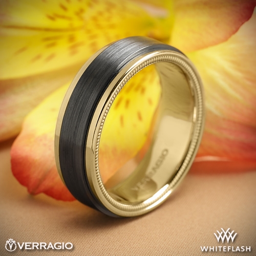14k Yellow Gold Verragio VWFX-7501 Black Titanium Men's Wedding Ring